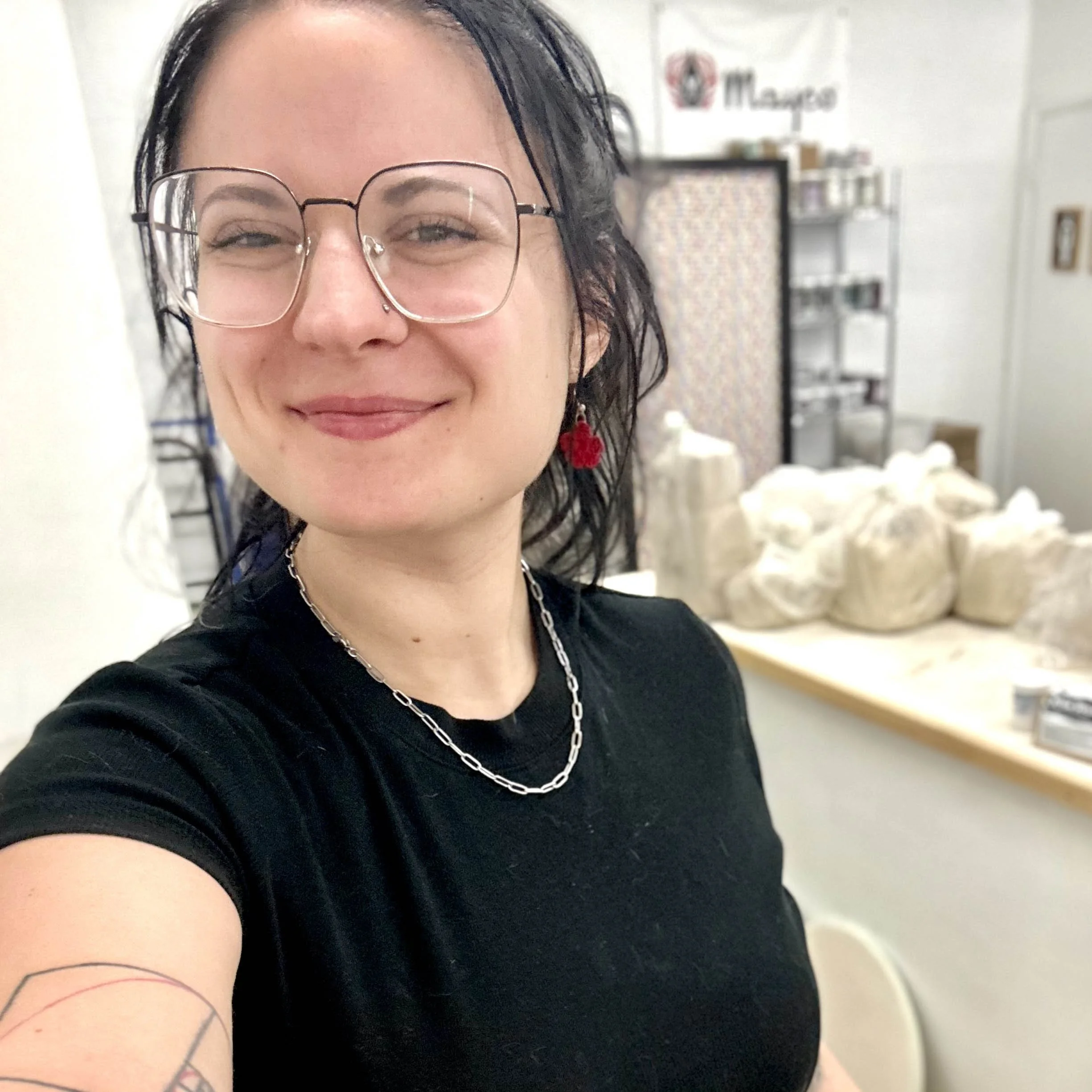 Emma Price is a lesbian ceramicist from New Jersey. She is a passionate artist and educator working with clay for 10 years and instructing for 5. She focuses on finding an intuitive nature within the medium. Emma’s work is rooted in Nerikomi, the art of layering pigmented porcelain to create intricate designs. She uses color and pattern to express feeling, patience, and her love of the process.