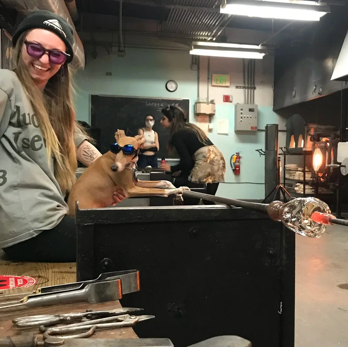 Kate Crankshaw was born in the Pinelands of New Jersey and currently resides in Philadelphia with her 2 small dogs and pet pigeon. She is skilled in both flameworking and hot glass, making work utilizing both processes. Her work explores ideas of memory, longing, and relationships. She has previously held internships at Wheaton Arts & Cultural Center, as well as Vetro Vero Studios. Kate has received multiple awards & scholarships, including the Kimmel Scholarship for excellence in Craft and the Brian Effron Pilchuck Glass School Scholarship to attend a workshop at Pilchuck Glass School in Stanwood, WA. She has also received a gallery pick from Wexler Gallery for her piece “Home, Springtime” while featured in the Art Unleashed exhibition. In addition to her art practice, she designs and makes jewelry and home decor, as well as fabricating work in glass for both designers and artists. Kate holds a BFA in Craft + Material Studies, with a focus in glass, from the University of the Arts (2019) and an MFA in Craft/Material Studies with a focus in glass from Virginia Commonwealth University (2023).