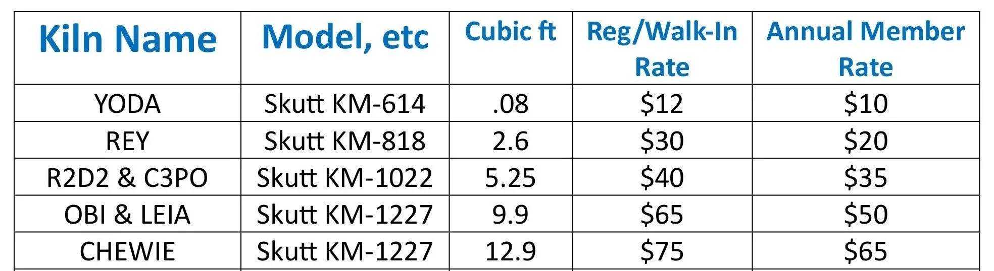 *Measurement calculation and payment happens in person, at time of drop-off. Ask for the Yellow Apron person (the Ceramics Studio staff member currently on duty).