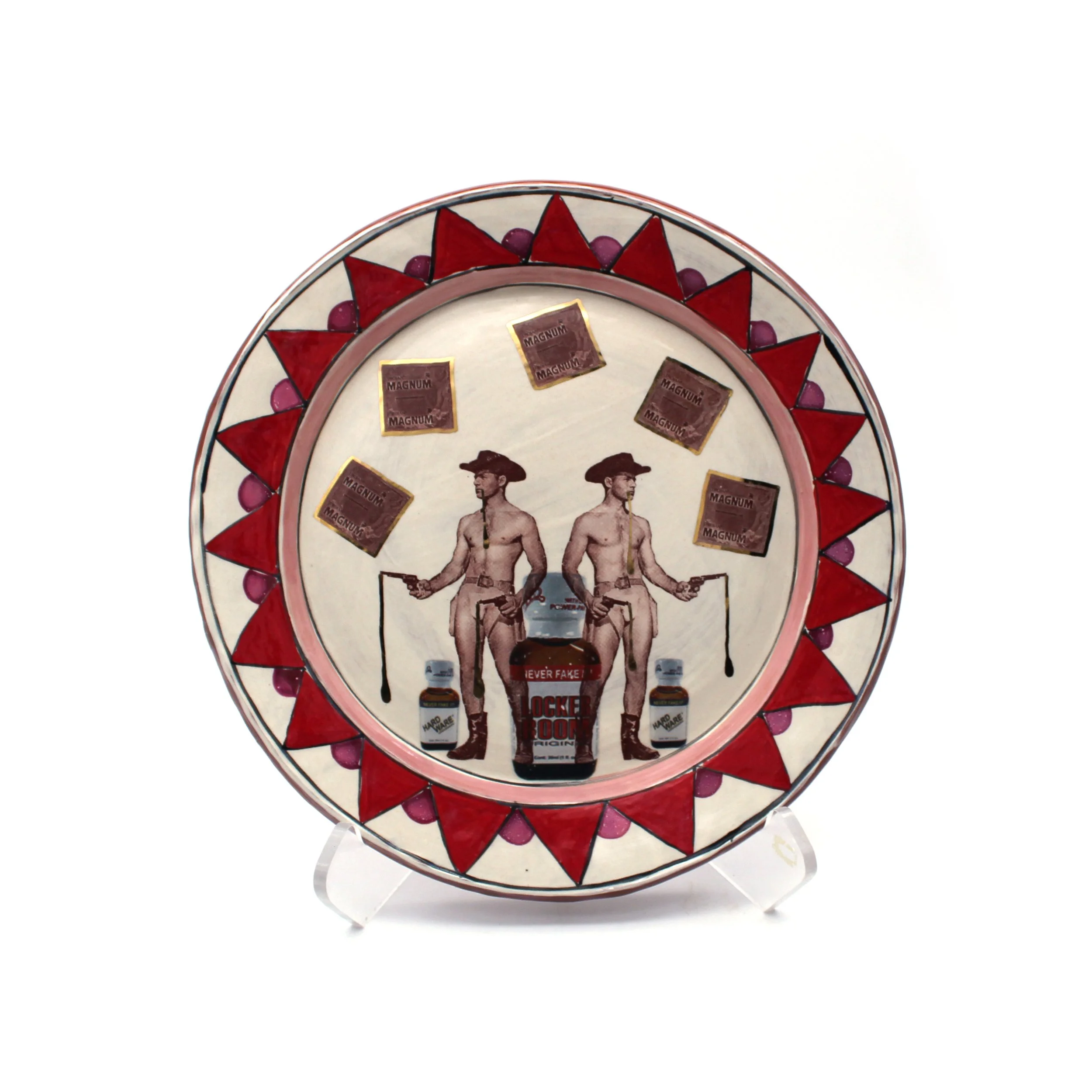 Terra cotta, slip, underglaze, glaze, decals, luster